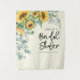 Aquarell Sonnenblumen Eukalyptusgrün mit Drehbuch und modernen Schriftart macht dieses Brautparty auf hellgelben Tapeten rustikal und elegant.