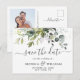 Elegantes Eukalyptus-Foto Hochzeit Speichern Sie d Ankündigungspostkarte
