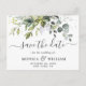 Eukalyptus floraler Hochzeitstag Aquarellfarbe Speichern Sie die Ankündigung des Datums Postkarte.