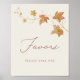 Fügen Sie Ihrem Lieblingstisch eine bezaubernde Touch hinzu, mit dem stürzenden Zeichen "Favors - Bitte nimm eins", das Herbstblätter in Aquarelltönen und warme, rustikale Farbtöne zeigt. Ideal für ein Brautparty, eine Verlobungsfeier oder eine Herbsthochzeit. Druck oder digital. Von Redwood & Vine Design Co.