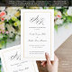 Dieses Programm ist eine 8.5 x 11-Seite, die Sie zum Zusammenbauen zusammenfalten müssen. Der goldene Rahmen ist in Dicke, Größe und Farbe bearbeitbar. Klassisches dezentes Schwarz-Weiß-Hochzeitsprogramm mit moderner Touch mit dem eleganten Drehbuch eines individuellen Monogramms. S und R