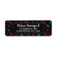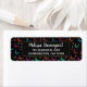 Adressetiketten mit elegantem Muster und grafischer Darstellung flatternder Schmetterlinge in vielen hellen Farben, kontrastieren sehr schön mit dem schwarzen Hintergrund. Whimsikale Blumen, Zierspieße und Blätter verleihen dem Raum einen gewissen Charme. Ein schwarzer Rahmen mit einem goldfarbenen Rahmen überlagert mit personalisiertem Text.