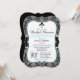Aqua blau, schwarz und weiß elegant Paris, Frankreich, Französisch Glamour Thema Braut Polterabend Einladung auf schwarzen Damast Muster. Features Fleur-de-lis und Vintage formale Designelemente.