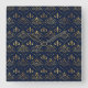 Elegantes Fleur-de-lis-Muster - Gold und tiefblau Quadratische Wanduhr