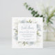 Das Design umfasst botanische blühende Duestblumen, elegante Brautparty-Blätter, Blumenblätterwälder, eine minimalistische Typografie, einen modernen Kalligrafiebuch, einen stilvollen, trendigen quadratischen Einladungen, ein sanftes, romantisches Aquarellbouquet, ein hellblaues silbernes Schriftart, eine simplizistische Eleganz, hübsche Blumen, ein schönes Sommergebirnussbäulle Herbst Winter
