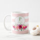 Elegantes Floral Monogramm auf rosa Streifen Kaffeetasse