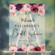 Ein elegantes Brautparty mattiertes Begrüßungsschild aus Acryl mit Aquarellbouquets aus Bordeaux und Rosa Rosa Blüten und "Brautparty" in einer Kalligraphie-Schrift. Persönlich mit dem Namen der Braut und dem Datum der Dusche.