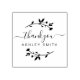 Elegantes Business Vielen Dank Rubber Briefmarke. Modernes minimalistisches Design mit trendiger Schriftzeichen und floralen botanischen Akzenten. Passen Sie den gesamten Text in diesem einfachen Design an, um eine personalisierte Briefmarke für den Versand Ihrer Produktpakete zu erstellen.