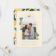 Unsere Zitronenchiffonhochzeit bewahrt das Datum, an dem das Design der Fotokarte Eleganz und Eleganz mit unserem handbemalten Aquarelllemonenbaum mit gelben Blüten, Blume und Blattwerk vereint. Crisp zitrusgelbe Farbtöne werden mit tiefblauen Jade-Grüntönen kombiniert, um dieses frische Hochzeitsdesign zu schaffen. Ein eleganter Bogen-Foto zum Hinzufügen Ihres besonderen Fotos. Alle Blumen und Kunstwerke werden von uns akribisch handbemalt, um unsere einzigartigen unvergesslichen Hochzeitsdesigns zu kreieren. Personalisieren Sie Text-, Schriftart- und Hintergrundfarben, um Ihre Designeinstellungen zu Anzug zu bringen.
