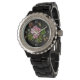 Elegantes florales Stickereimuster auf schwarzem H Armbanduhr