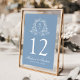 Elegantes florales Wappen Monogram Blue Wedding Tischnummer