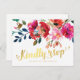 Elegante Hochzeitspostkarten mit klassischem weißem Hintergrund, Aquarellblütenanzeige, einem stilvollen Imitat Goldfolie typografischer Titel und einem modernen uAwg Template.