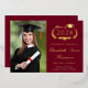 Moderne bordeauxrote Uni-Abschluss-Ankündigung mit echter Folie, "Class of" in einer Illustration von Lorbeerkranz mit einem Grade Cap Topper und Diplom, ein Foto des Absolventen und ihren Namen in einem eleganten Drehbuch. Fügen Sie ihre Schule, Hauptfach, Ehren oder künftige Pläne.