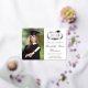 Moderne Uni-Abschluss-Ankündigung mit echter Folie, "Class of" in einer Illustration von Lorbeerkranz mit einem Graduiertenkopf und Diplom, ein Foto des Absolventen und ihren Namen in einem eleganten Drehbuch. Fügen Sie ihre Schule, Hauptfach, Ehren oder künftige Pläne.
