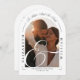 Diese elegante Schwarz-Weiß-Kalligraphie-Script Foto Bogen Hochzeitseinladung kann mit Ihren Informationen in der modernen Typografie personalisiert werden. Entwickelt von Thisisnotme©