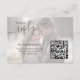 Diese elegante Hochzeitskarte bietet eine zeitlose Schwarz-Weiß-Fotovorlage mit stilvollem Kalligraphieskript und minimalistischer Typografie für einen sauberen, modernen Look. Es ist einfach und raffiniert konzipiert und enthält einen komfortablen QR-Code, der direkt auf Ihre Hochzeitswebsite verweist, sodass die Gäste leicht antworten können. Diese einfache RSVP-Karte ist eine perfekte Mischung aus Form und Funktion und bietet eine personalisierte und raffinierte Touch für Ihre Hochzeitsausstattung.
