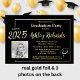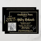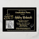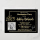 Elegantes Foto Black Gold Graduation Party Real Folieneinladung