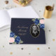 Dieses wunderschöne blaue Blumenbuch mit einem Foto mit blauen und rosafarbenen Rosen und blauen Blume auf dunkelblauem Hintergrund macht es leicht, diese wunderschöne Blüte zu personalisieren.