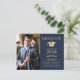 Elegantes Foto Blue Gold Uni-Abschluss Ankündigungspostkarte