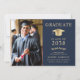 Elegantes Foto Blue Gold Uni-Abschluß Party Einladung