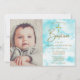 Elegantes Foto Blue Watercolor Gold Cross Taufe Einladung