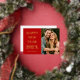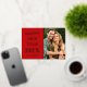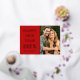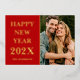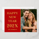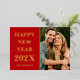 Elegante rote und echte Goldfolie "Happy new year 2025" Urlaubskarte personalisiert mit einem Foto, dem Familiennamen oder beliebigen benutzerdefinierten Texten und einer benutzerdefinierten Nachricht auf der Rückseite.