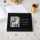 Dieses klassische Frame Foto-Denkmal oder Beerdigung-Gästebuch zeigt das Foto Ihres Liebsten als Brennpunkt auf einer schwarzen Kulisse mit doppeltem Goldrahmen-Akzent. Die editierbaren Wörter "In Loving Memory" erscheinen über Ihrem Liebsten. Sie können den Namen und die Daten Ihres Liebsten in das Design eintragen und ein individuelles Gästebuch erstellen.