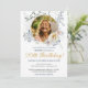 Elegantes Foto Gelbe Flora 90. Geburtstag Einladung. Ein zartes und detailliertes, floralfarbenes Geburtstagsthema mit individuellem Foto! Der gesamte Text ist anpassbar. Ideal für ein Party mit Gartentee oder eine Geburtstagsfeier mit Blumenmotiven und botanischen Themen. Benötigen Sie Hilfe mit dieser Vorlage? Kontaktieren Sie den Designer, indem Sie auf den Button 'Nachricht' unten klicken.
