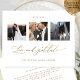 Vielen Dank an Ihre Gäste mit dieser eleganten drei Foto Collage Hochzeit danke Ihnen Karte! Sauberes und einfaches, weißes und goldenes Design, voll Eleganz und Anmut. Phrase "mit Liebe und Dankbarkeit" in der modernen handgeschriebenen Kalligraphie in Imitaten Goldfolie. Einfache Vorlage, wo Sie Ihre Bilder hinzufügen können, Zazzle wird alle Arbeit und fügen Sie sie in der richtigen quadratischen Form, Größe und Position für Sie! Möglichkeit, eine "gedruckte" Nachricht auf der Rückseite - OR - verlassen Text-Abschnitt in Leerzeichen, sodass Sie individuelle persönliche Nachrichten später schreiben können. Verfügbar in mehreren Größen Optionen. Das gleiche Design mit schwarzem Text ist ebenfalls verfügbar.