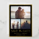 Dies ist eine moderne Schwarz-Gold-Hochzeit speichern Sie die Dattelkarte mit einem eleganten und modernen Schriftart in Gold zusammen mit drei Fotos mit einem einfachen goldenen Rahmen. Auf der Rückseite finden Sie eine Nachricht, die Sie personalisieren können, zusammen mit einem anderen Foto. Dieses Design wendet einen Filter auf Ihre Fotos an, um ein wenig Vintag zu wirken. Sie können diesen Filter entfernen, indem Sie auf die blaue Schaltfläche klicken und die Filter auswählen, die bearbeitet werden sollen. Ändern Sie die Farben, Texte und Fotos ganz einfach nach Bedarf. Bitte kontaktieren Sie den Designer, wenn Sie Fragen zu diesem Design haben.