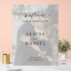 Elegante, maßgeschneiderte Hochzeitsbride und Bräutigamen weiße Overlay-Begrüßungsschilder mit einem einfachen, handgeschriebenen Kalligrafieschrift und Ihrem Foto. +++++++++++++++ Geeignet für formelle, minimalistische Hochzeiten.