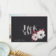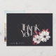 Zeigen Sie Ihre herzliche Wertschätzung mit diesen eleganten 7" x 5" Hochzeitskarten mit den Worten "Danke", mit schwarzem Elfenbein und magenta Blume auf schwarzem Hintergrund. Die Kartenrückseite bietet einen Platz für Ihr Lieblings-Foto, ein kleines Herz, die Meldung "mit Liebe von den neuen", ein optionales Meldungsfeld und einen Platzhalter für die neu verheirateten Namen.
