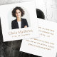 Weiße oder benutzerdefinierte Visitenkarten mit Ihrem Foto in einem Bogenrahmen und Ihrem Namen und Titel unten. Sie können die Hintergrundfarbe, die Schriftart- und die Schriftart-Farbe ändern, Elemente verschieben und verändern.