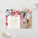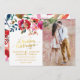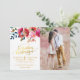 Elegante Hochzeitseinladungen mit klassisch weißem Hintergrund, ein Foto der Braut und des Bräutigams, Aquarellblütenschau, ein stilvolles Imitat mit Goldfolie und einer modernen Hochzeitsvorlage.