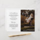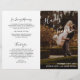 Modernes Budget gefaltetes Hochzeitsprogramm mit einem einfachen Design mit Ihren Namen in einem eleganten, handgeschriebenen Drehbuch an der Spitze links und Ihre Hochzeitsdetails in der rechten Ausrichtung unten rechts, über Ihr Lieblings-Foto. Die schicke Handschrift fügt diesem minimalistischen Design eine romantische Touch hinzu.