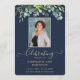 Personalisieren Sie dieses einfache und elegante Programm mit dem Namen, dem Foto und der Botschaft Ihres verstorbenen Lieben. Mit diesem modernen, stilvollen, eukalyptusblühenden Blumenmuster mit elegantem goldfarbenem Drehbuch auf klassisch blauem Hintergrund ehren und feiern Sie das Leben Ihrer Lieben. Leicht anpassbarer Text und Text. Unser tiefempfundenes Beileid und unsere Gebete sind mit Ihnen in dieser sehr schwierigen Zeit.