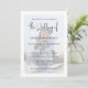 Dieses Design besticht durch ein modernes, minimalistisches Foto-Bild, einen eleganten, trendigen, staubblauen Hintergrund mit Kalligraphieschrift-Text, für das Foto weiß Overlay, klassisch simplizistisch minimalistisch, mit einfarbigem Ampersand und Rückseite, romantisch kalligrafischer Typografie-Schriftart, ein schicker Overlay Vellum-Stil, moderne rustikale Eleganz-Romantik, ein einfaches Foto-Hochzeitfotografie, Hochzeitfotografie, Foto Meldebogen für Einladungen