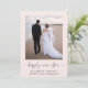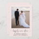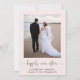 Elegantes hellrosa Dekor oder private Hochzeitsankündigung und Empfang Einladung, die Ihr Foto und "glücklich immer danach" in einem schicken Skript mit Swashes. Auf der anderen Seite, personalisieren Sie Ihre Hochzeitsankündigung, fügen Sie einen Empfang oder eine Party Einladung, geben Sie Ihre Hochzeitswebsite-Adresse ein, um einen QR-Code zu erstellen, damit die Gäste online scannen und Ihre verheirateten Namen in einem signaturähnlichen Skript unterschreiben können.