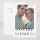 Erzählen Sie Ihren besonderen Tag mit dieser einzigartigen, personalisierten Save the Date Karte. Mit einem atemberaubenden Foto von Ihnen beide auf weißem Hintergrund mit elegantem Weiß. Ihre Namen, das Hochzeitdatum und der Standort werden vorne angezeigt, und ein QR-Code auf der Rückseite führt Sie mühelos zu Ihrer Hochzeitswebsite. Erschaffen Sie einen bleibenden Eindruck und machen Sie Ihre Liebe zum Kernstück Ihrer Hochzeitspräparate. Bestellen Sie noch heute, um Ihre Freude zu teilen und den Countdown für Ihren Traumhochzeitstag zu starten.