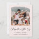 Elegantes hellrosa Dekor oder kleinere Hochzeitsankündigung und nach der Hochzeit oder Empfang Einladung. Die Vorderseite zeigt Ihr Foto "Celebrate With Uns" in einem schicken Skript geschrieben und Ihre Vornamen, Hochzeitstag und Ort in einfachen modernen Typografie. Auf der anderen Seite, personalisieren Sie Ihre Hochzeitsankündigung oder Eröffnungsverkündung detaillierter, fügen Sie einen Empfang oder eine Party Einladung hinzu und unterschreiben Sie Ihre verheirateten Namen in einem signaturähnlichen Skript.