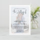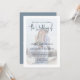Dieses Design zeichnet sich durch ein modernes, einfaches minimalistisches Foto-Bild, QR-Code-uAwg via Website, Online-Scannable Web, einen staubblauen, eleganten Drehtext, Verlobung Foto-Paar weißes Overlay, einen klassischen, vereinfachenden, romantischen Kalligraphie-Typografie-Schriftart, schicken Overlay Vellum-Stil-Design, ein modernes rustikales Romantik mit rustikalen Eleganz und Hochzitaten, mit Hochzitaten und mehr Informationen zu mehr Informationen