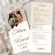 Dieses elegante Hochzeitsprogramm bietet Platz für ein Foto von Ihnen und Ihrem zukünftigen Ehemann, und Text in einem klassischen und raffinierten Gold-Skript.