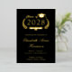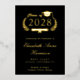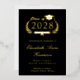 Formal Schwarzer Uni-Abschluß Ankündigung mit Originalfolie (wählen Sie zwischen Gold, Silber oder Rose Gold), "Class of" in einer Abbildung eines Lorbeerkranzes mit einem Grad Oberteil und Diplom, und der Name des Absolventen in einem eleganten Drehbuch. Fügen Sie ihre Schule, Dur, Ehren oder zukünftige Pläne in klassische Serifentypografie. Ihr Foto füllt die Rückseite der Karte aus.