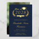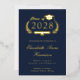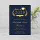 Formal dunkelblaue Uni-Abschluß-Ankündigung mit Originalfolie (wählen Sie zwischen Gold, Silber oder Rose Goldfolie), "Class of" in einer Abbildung eines Lorbeerkranzes mit einem Graduiertenkopf und Diplom und dem Namen des Absolventen in einem eleganten Drehbuch. Fügen Sie ihre Schule, Hauptfach, Ehren oder künftige Pläne. Ihr Foto füllt die Rückseite der Karte aus.