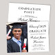Einfache und moderne Ankündigung und Party Einladung eines Uni-Abschlusses mit einem Foto des Absolventen, seinem Namen und seinem Klassenjahr in einer eleganten Schrift und seiner Universität, Hauptfach und Auszeichnung. Fügen Sie auf der Rückseite die Details zum grad-Party hinzu.