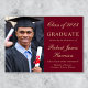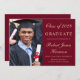 Elegante bordeauxrote Uni-Abschluss-Ankündigung mit einem Foto des Absolventen, seinem Namen und Klassenjahr in einem stilvollen Goldskript und seiner Universität, Hauptfach und Ehren.