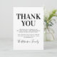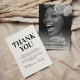 Wir bedanken uns für Ihre Dankbarkeit durch unsere elegante Beerdigung. Es ist auf einer flachen Einladungskarte gefertigt und mit Einfachheit versehen, um die Feierlichkeit des Ereignisses widerzuspiegeln. Die Vorderseite der Karte ist mit einem minimalistischen Schwarz-Weiß-Dankeschön-Template geschmückt und bietet einen subtilen, aber stilvollen Weg, um all jenen, die während Ihres Aufenthalts Trost geleistet haben, Ihre Wertschätzung zu vermitteln. Jedes Detail ist wichtig. Deshalb finden Sie auf der anderen Seite die herzergreifende Personalisierung des Fotos Ihrer verstorbenen Lieben, gepaart mit ihrem Namen und ihren Daten.