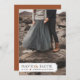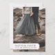 Moderne Foto-Karte Hochzeit Speichern Sie das Datum Design. Template bietet Platz für ein Foto Ihrer Verlobung mit einem einfachen klassischen Frame Overlay, in dem Sie Ihre Hochzeit und die Namen der Braut und Bräutigam hinzufügen können. Auf der Rückseite ist Platz, um bei Bedarf zusätzlichen Text hinzuzufügen. Verwenden Sie die Designtools, um Schriftart anzupassen, Text umzudrehen, Papiertypen und Hintergrundfarbe zu ändern, um Ihr eigenes einzigartiges Ankündigungsdesign zu erstellen.