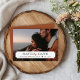 Moderne Foto-Karte Hochzeit Speichern Sie das Datum Design. Template bietet Platz für ein Foto Ihrer Verlobung mit einem einfachen klassischen Frame Overlay, in dem Sie Ihre Hochzeit und die Namen der Braut und Bräutigam hinzufügen können. Auf der Rückseite ist Platz, um bei Bedarf zusätzlichen Text hinzuzufügen. Verwenden Sie die Designtools, um Schriftart anzupassen, Text umzudrehen, Papiertypen und Hintergrundfarbe zu ändern, um Ihr eigenes einzigartiges Ankündigungsdesign zu erstellen.