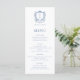 Diese elegante französische Rose Blue Monogram Wappen Wedding Menükarte eignet sich hervorragend für Ihre Barockzeit mit Vintagem Blumenschild und klassischer zeitloser Typografie.